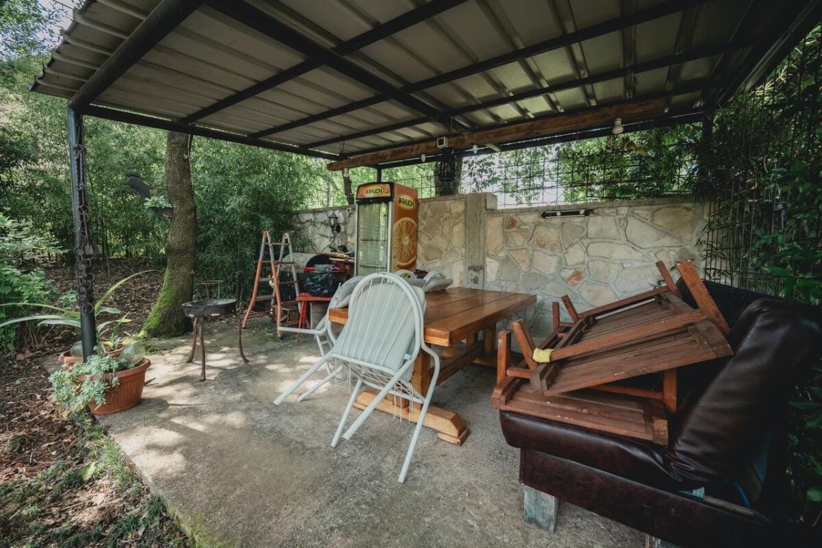 Luksuzna kuća od 349m2 na parceli od 1100m2 je na prodaju. Parcela je ograđena i uređen. Na parceli se nalaze dve pomoćne zgrade od čvrstog materijala i pergola za roštiljanje i sedenje u lepom vremenu. Ispred manje pomoćne zgrade iza kuće, nalazi se veliki zatvoreni rezervoar za vodu koji drži 45m3 vode. Taj rezervoar se može pretvoriti u bazen.