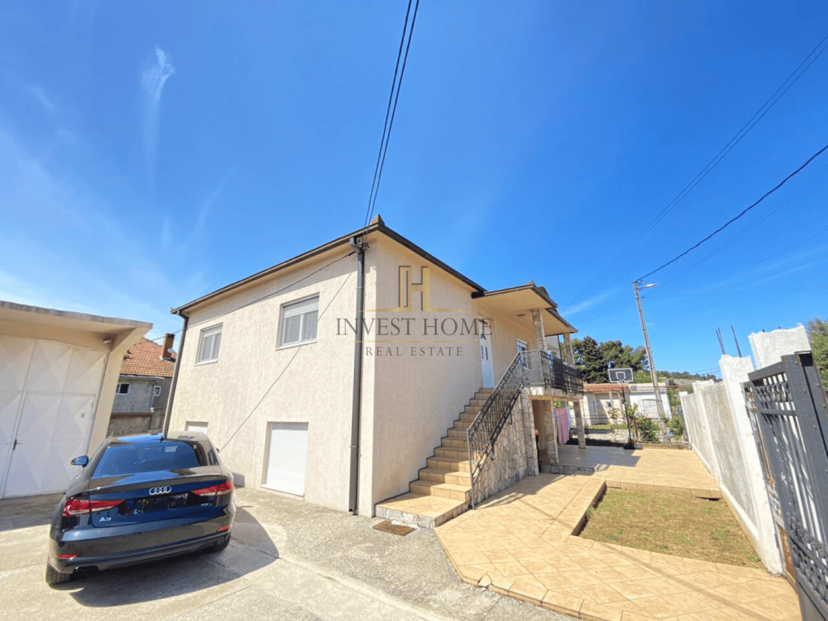 Za prodaju kuća, Masline, površine 200m2. Udaljena je 2km od centra I nalazi se na placu površine 570m2.U niskom prizemlju I na spratu se nalaze dva dvosobna stana površine 100m2. Nekretnina posjeduje ostavu od 9m2 kao I auto servis površine 94m2. Saobraćajno je dobro povezana sa ostalim djelovima grada.
