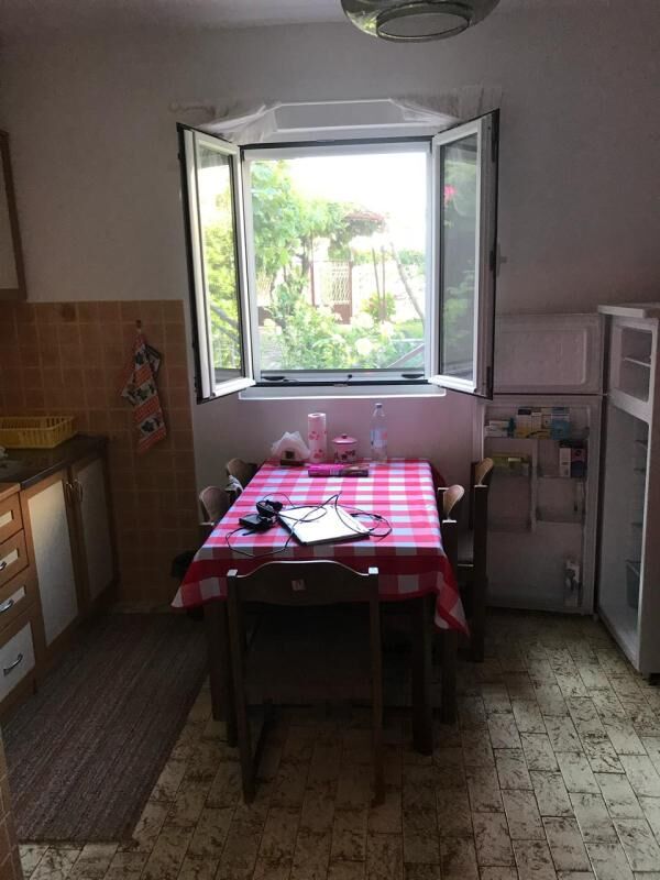 Na prodaju je dvokatna kuća u dobrom stanju, smeštena u mirnom i udobnom delu Podija. Opis: Ukupna površina kuće – 105 m² Površina terase – 20 m² Površina parcele – 300 m² Garaza – 25 m² Parking za 2 automobila Raspored: Prvi sprat: dve spavaće sobe, dnevna soba, kuhinja, kupatilo i dodatna soba za skladištenje stvari. Drugi sprat: apartman-studio sa kuhinjom i kupatilom, velika terasa sa pogledom na more i planine. Ispred kuće se nalazi udoban vrt. Kuća je potpuno spremna za stanovanje.