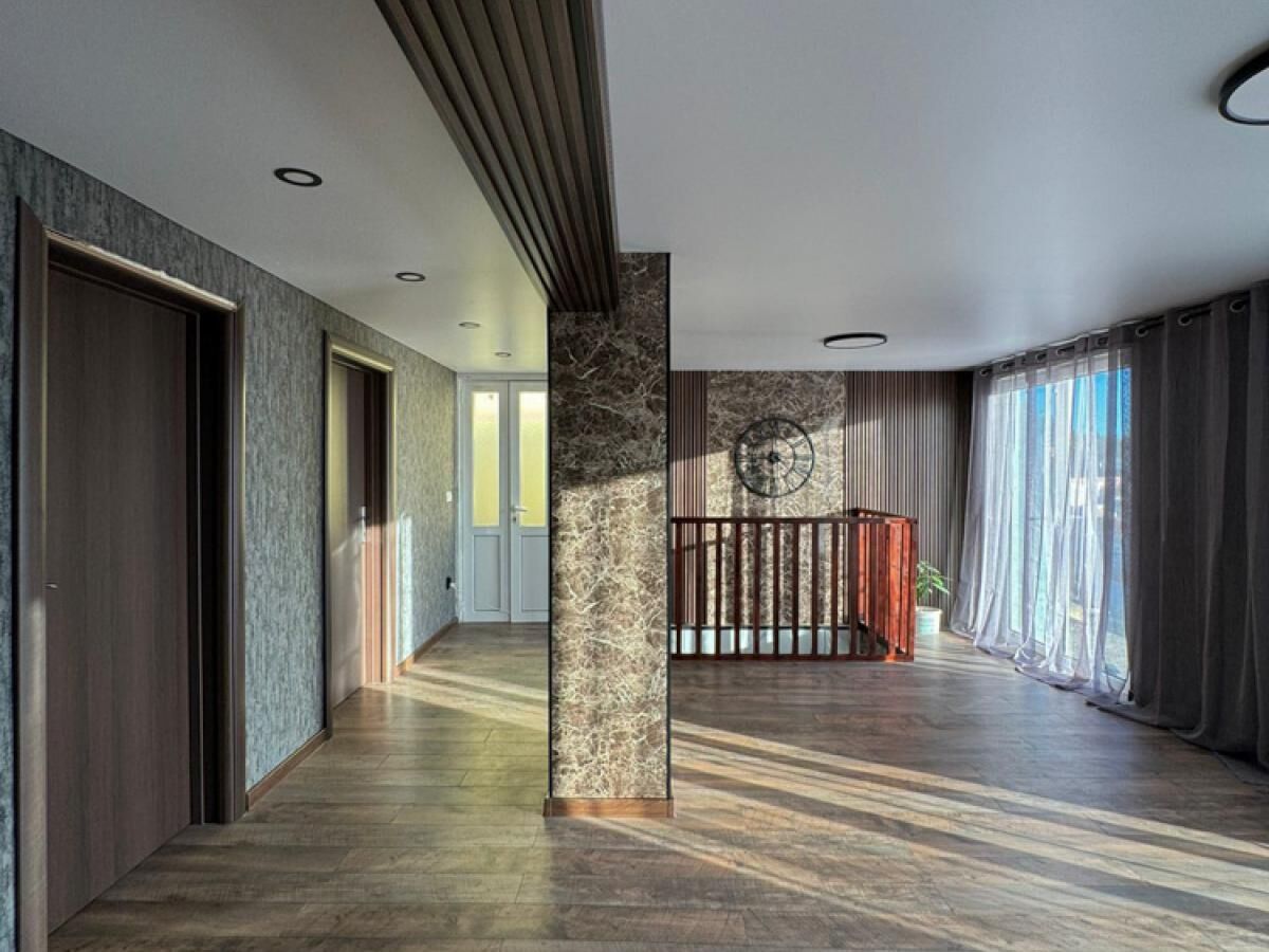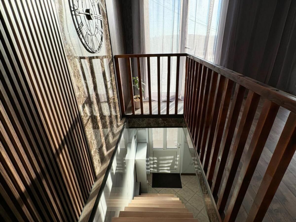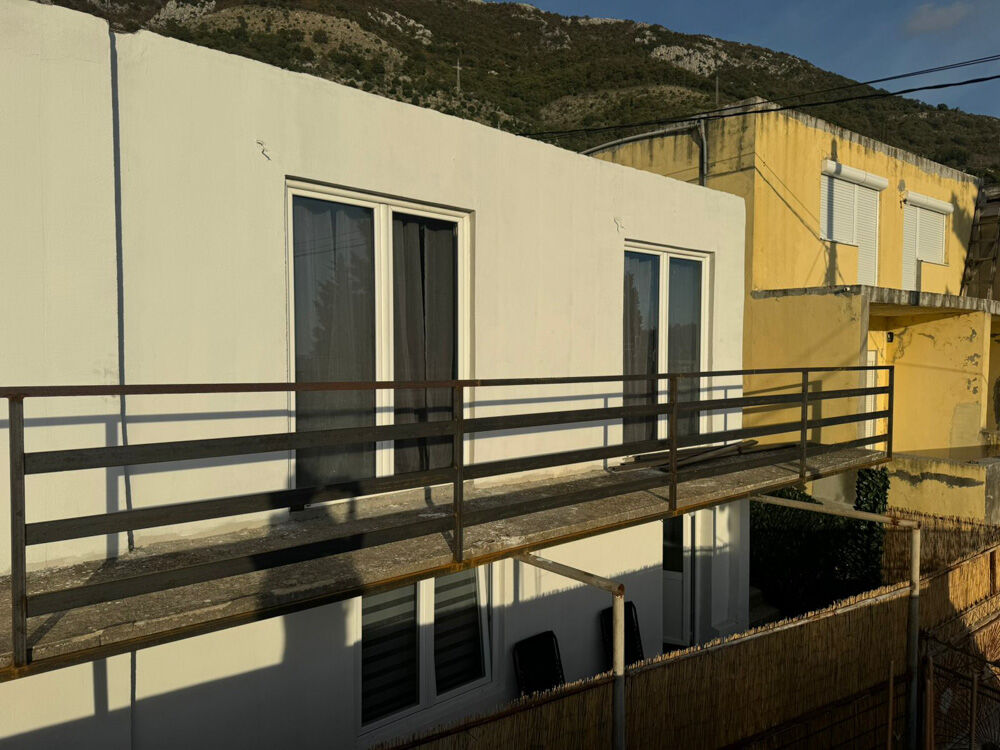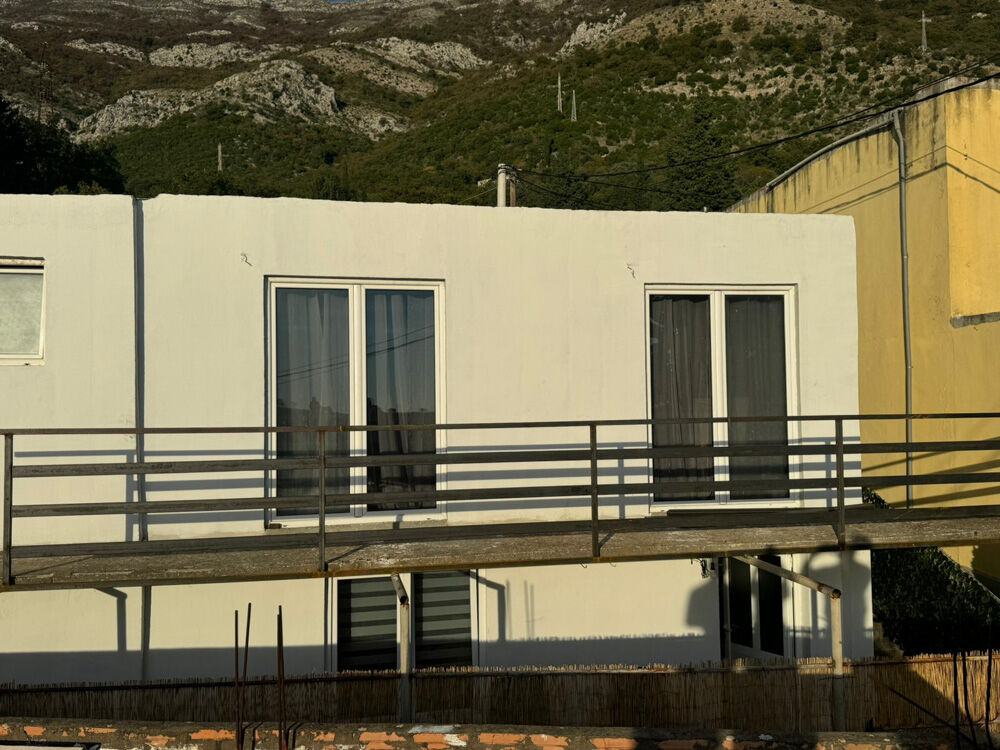 Dvoetažni dom posle kapitalnog remonta u Sutomore. Površina kuće 102 m2 sa terasama sa pogledom na more. Površina zemljišta 129 m2. Struktura kuće: na donjem spratu - kuhinja sa dnevnom sobom i soba slobodnog planiranja; na gornjem spratu: 2 spavaće sobe, kupatilo i prostrana dnevna soba. Savremeni remont sa spuštenim plafonima, unutrašnjim stepenicama i dobrom završnom obradom, panoramskim prozorima. Ogradjeno dvorište sa kapijom, sa 2 parking mesta. Gradski vodovod. Udaljenost do mora 1200 metara. Pogled na more sa drugog sprata. Razvijena infrastruktura. Sve u pešačkoj dostupnosti.