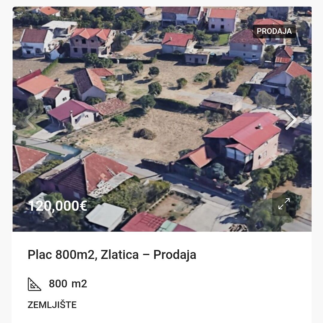 Prodaje se pravougaoni plac u naselju Zlatica. Nalazi se u blizini Idea marketa i podvožnjaka kod trim staze Zlatica. Plac je ograđen, ravan i urbanizovan. Na placu je moguće graditi prizemlje i dva sprata. Objekat (kuća) u osnovi može imati do 166m2, a ukupno na svim etažama do 500m2. Plac se nalazi u gusto naseljenom kvartu, pa su osnovne potrepštine na dohvatu ruke. Na plac su struja i voda. ID nekretnine M670 +382 69 618 445