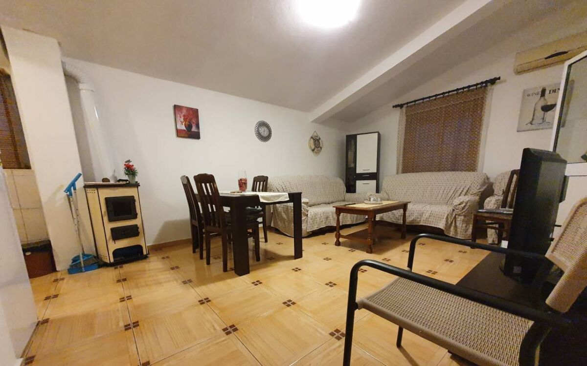 Izdaje se 2. sprat kuće sa 2 spavaće sobe, velikim dnevnim boravkom sa kuhinjom, 1 kupatilom, udobnom terasom. Potpuno nameštena, ima svu potrebnu kućnu tehniku, rernu. Prodavnice, škola, plaža - na dohvat ruke (5-7 minuta). Plaćanje: za 1 prvi mesec + 1 poslednji mesec + depozit. Bez kućnih ljubimaca. Rok zakupa: do juna.