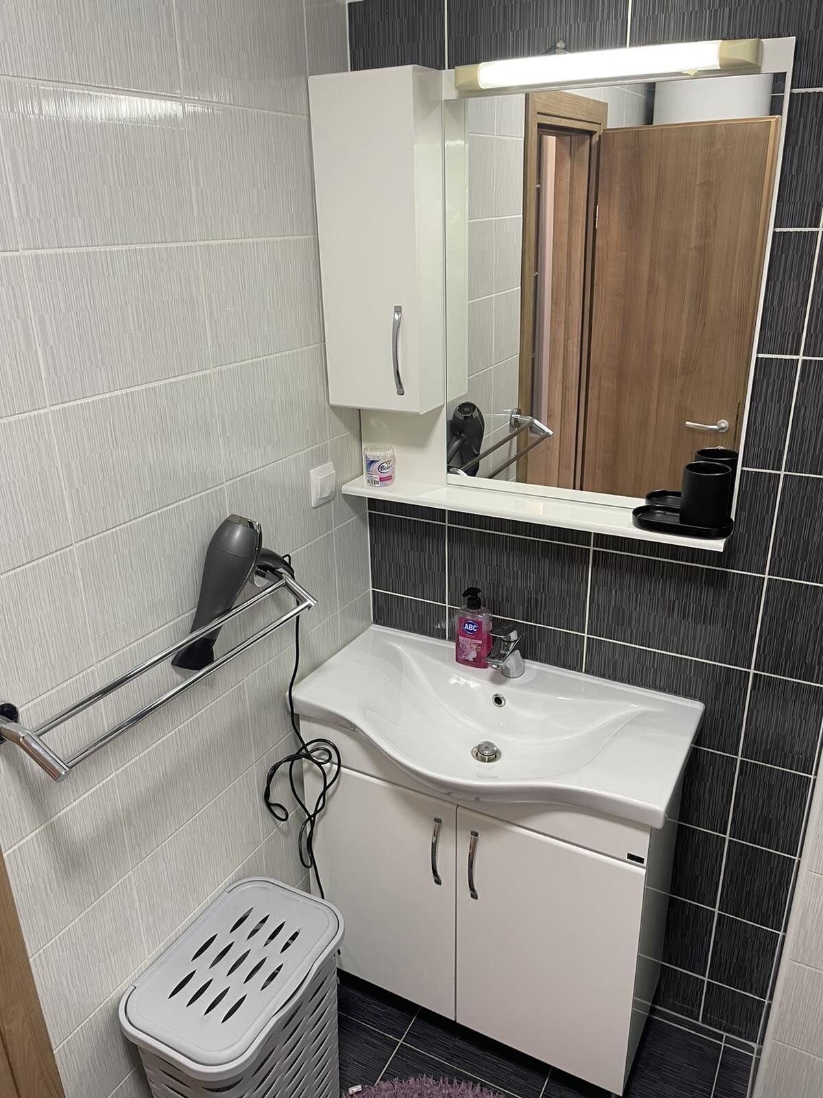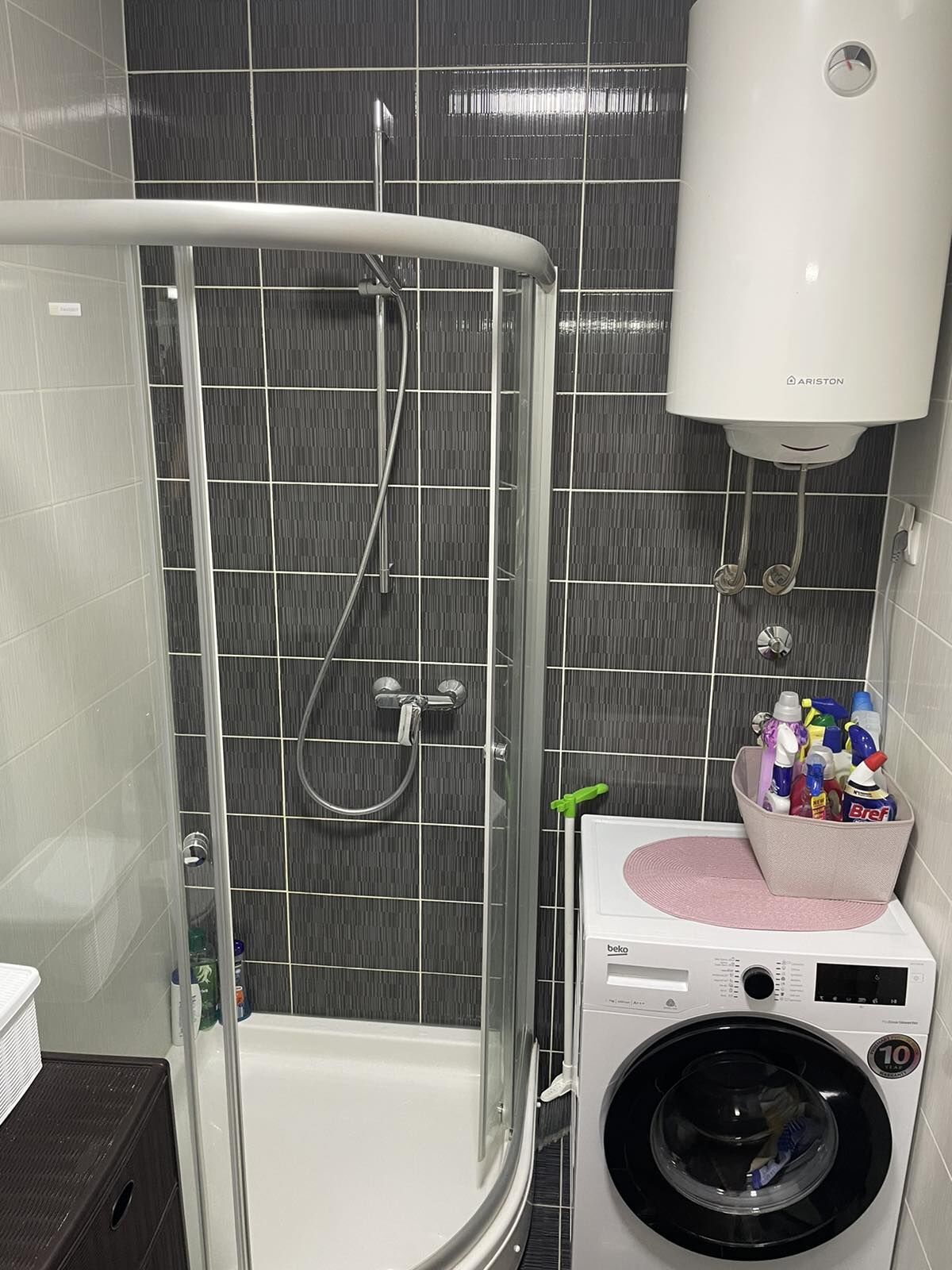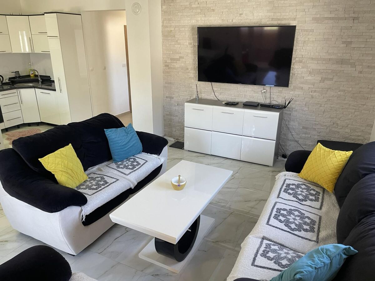 Stan sa velikim dnevnim boravkom u Baru (Ilino) Do sezone Grad: Bar Površina: 70 m2 Sprat: 4 Broj spavaćih soba: 2 Iznajmljivanje: mesečno Cena: 500€ Struktura stana: – dnevna soba-kuhinja sa trpezarijom – 2 spavaće sobe – kupatilo – zastakljena terasa Udobnosti: – parking – internet i televizija – klima uređaj – veš mašina – mašina za pranje sudova – fen, čajnik, električni sendvič aparat – lift Udaljenost do – plaže – 1,4 km – najbližeg supermarketa, apoteke – 900 m – kafića – 400 m – prodavnice povrća – 50 m – male prodavnice – 100 m Dodatno se plaćaju komunalni računi