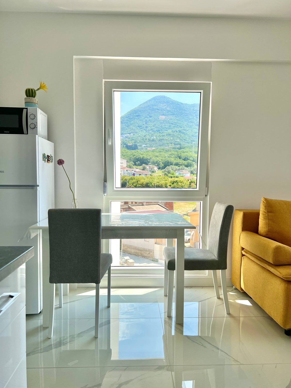 Novi udoban studio za iznajmljivanje u Baru 8 minuta do centra grada Oko 20 minuta peške do mora 36 m², 4. sprat (levo od lifta, prozori gledaju na parking) ✅ Sve je novo ✅ Podno grejanje ✅ Veliki frižider ✅ Mikrotalasna i rerna ✅ Balkon sa pogledom na planine 📄 Uslovi: 1 + 1 + 1 (prvi mesec + poslednji mesec + depozit)
