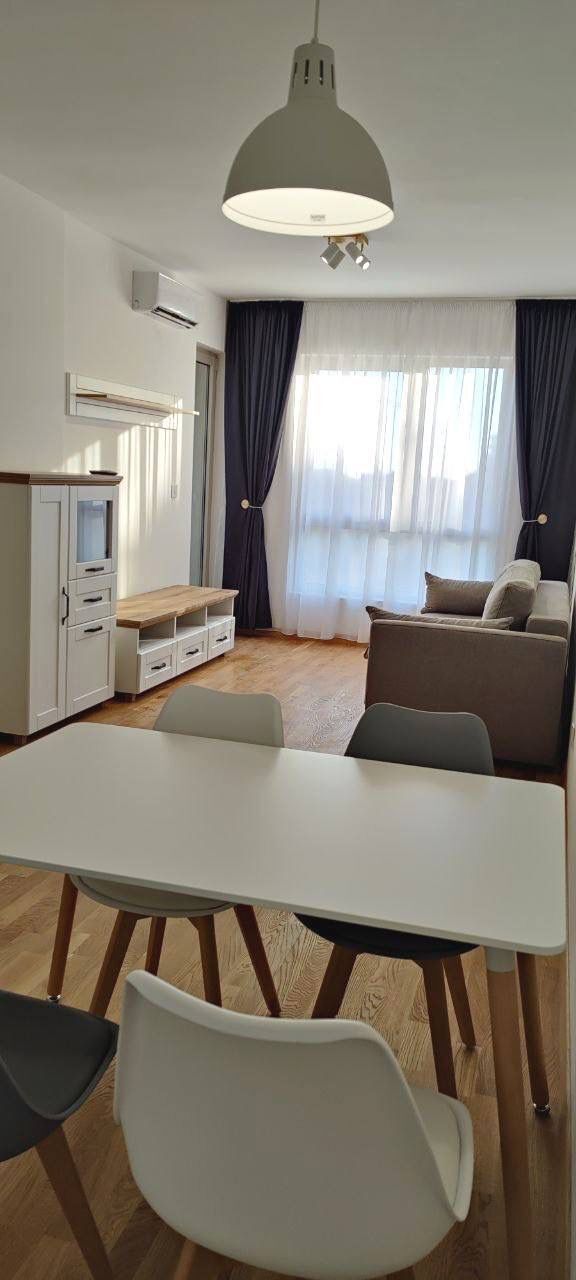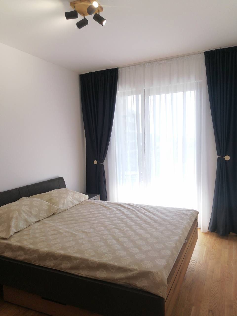 Bečići! Godišnja renta stana sa odvojenom spavaćom sobom. Površina 47m2, 3. sprat, lift. Stan je potpuno opremljen modernim nameštajem i tehnikom. Odvojena spavaća soba, prostrani dnevni boravak sa kuhinjom i trpezarijom, kupatilo i terasa. U blizini supermarket IDEJA. Cena 600€ + ku Uslovi plaćanja prvi mesec + poslednji i depozit.