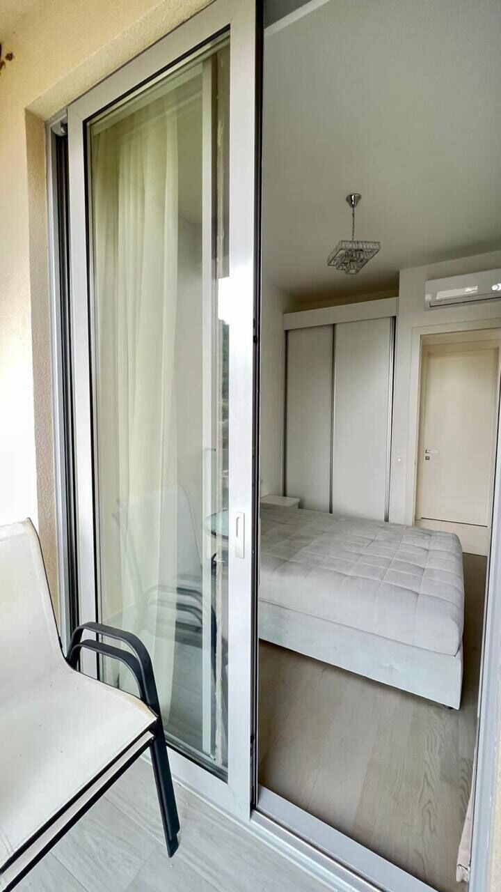 GODIŠNJA NAJAM Bečići, Crna Gora. Površina 65 m2. Spavaće sobe 2. Mašina za pranje sudova. Balkon. Sprat 4. Lift. Bočni pogled na more. Pogodna lokacija — do mora svega nekoliko minuta peške. ŽK Delmar Bečići. ID335