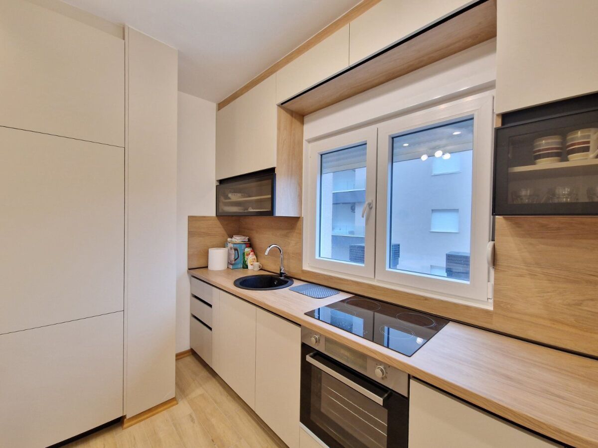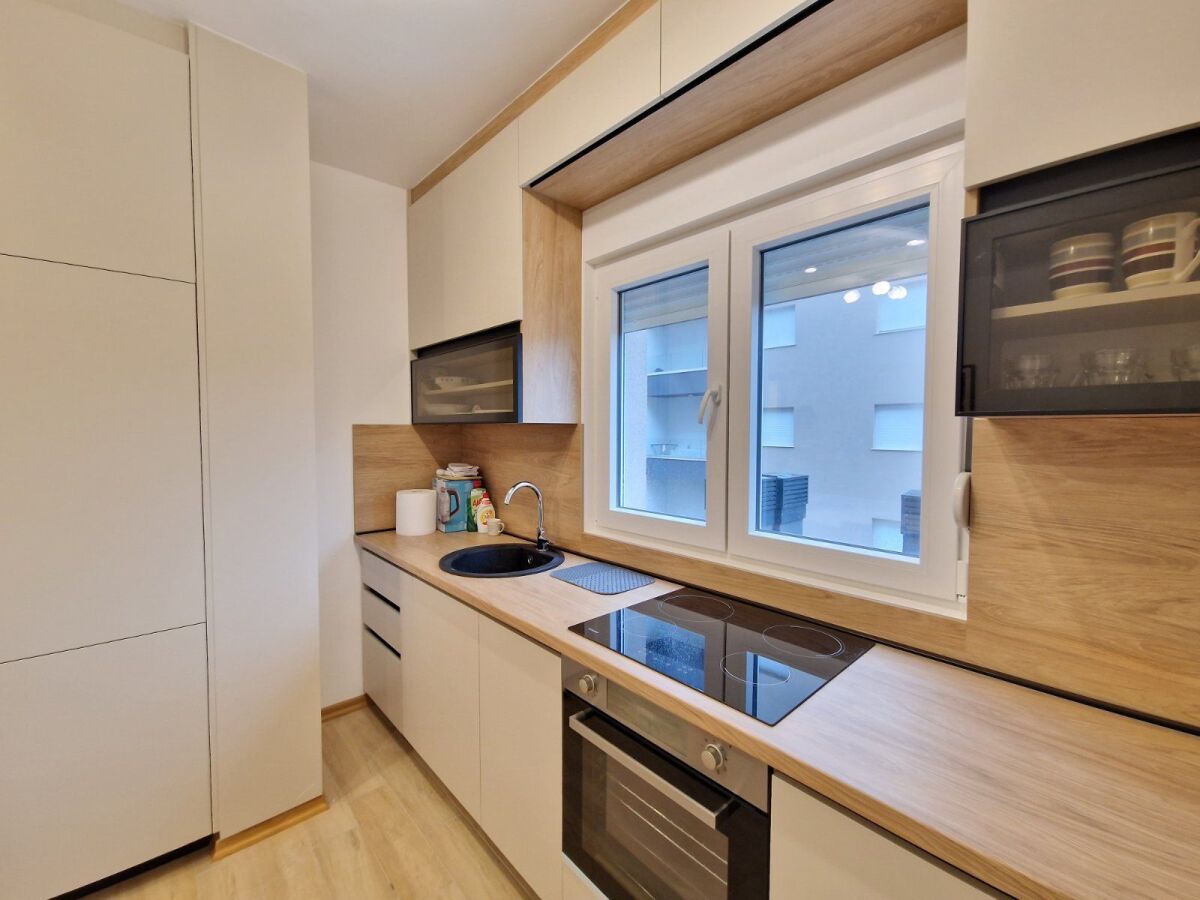 Izdaje se jednosoban kompletno opremljen stan u novom kompleksu, The OLd Bakery u Budvi. Stan je kompletno opremljen modernim namještajem i nalazi se na 7. spratu u zgradi sa liftom. Južno je orjentisan i ima pogled na more i uredjeno dvorište kompleksa. Ima površinu od 52m2 i sastoji se od dnevnog boravka, kuhinje, trpezarije, spavaće sobe i terase sa pogledom na more. U stanu je sve novo i luksuzno je opremljen. Uslovi:Ugovor na godinu dana,dve kirije unapred (prva i poslednja) kirije kao i depozit u iznosu od jedne mesečne kirije. Stan se izdaje na period do 01.06.2026