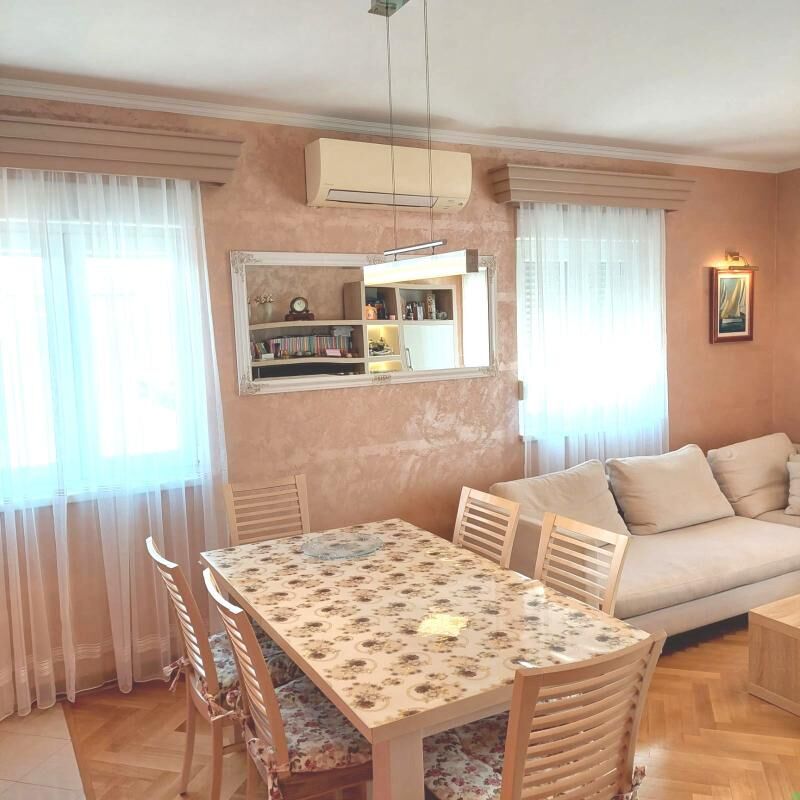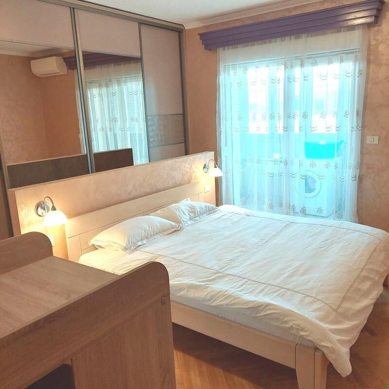 Veoma prostrana dvosobna luksuzna stan od 88m2 za iznajmljivanje u City Kvartu. Stan se nalazi na 5. spratu. U zgradi postoji video nadzor. Luksuzni enterijer, svetle i šarene boje u tehnici Sahara, stan je potpuno namešten i opremljen kvalitetnom tehnikom: šporet, frižider, Daikin klima uređaji u svih 3 sobe, veš mašina i sušilica, Bosch kuhinja, 8-metarski ugradni ormari. Struktura stana: dnevna soba, trpezarija, kuhinja, 2 spavaće sobe, moderno opremljena kupatilo, toalet, 2 hodnika i 2 terase. Baštenski nameštaj se nalazi na terasi koja gleda na zapad. Terasa koja gleda na istok je zatvorena i ima sušilicu za veš. Podno grejanje u kuhinji i kupatilu. Parking na tri obližnje ulice. U blizini stana se nalaze Capital Plaza, Delta City i City Mall. Pušenje i kućni ljubimci nisu dozvoljeni. Notarski ugovor. Cena: 1000 evra + PDV mesečno. Plaćanje za 1 prvi mesec + 1 poslednji mesec + depozit. Moguća popust od 10% / 15% pri plaćanju na godinu / dve unapred.