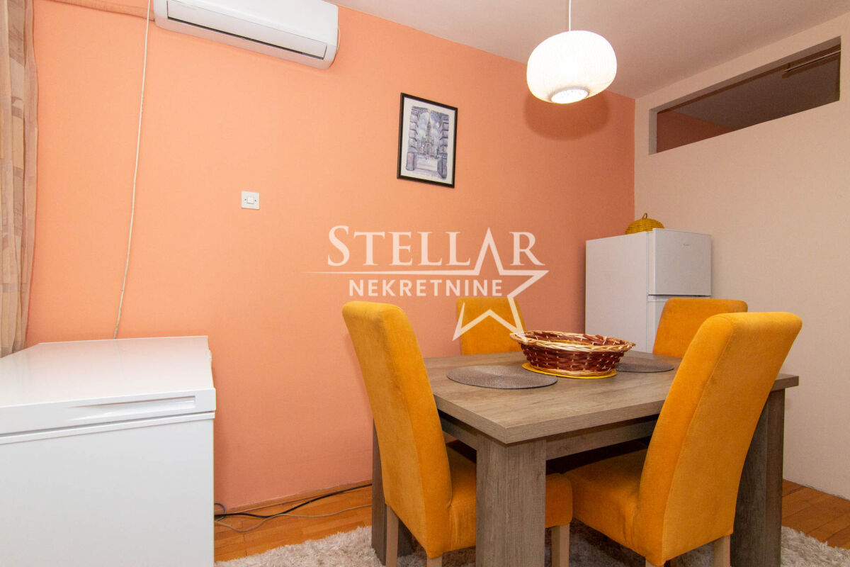 Izdaje se u potpunosti opremljen jednosoban stan 42m2 u Bloku 5. Stan se nalazi na trećem spratu u zgradi sa lifotm. Orijentacija stana je istočna, što mu daje dosta prirodnog svijetla ujutro. Posjeduje klima uredjaj u dnevnom boravku, a od ostale tehnike ima veš mašinu. Stan se nalazi na odličnoj lokaciji, svega 15tak minuta hoda od Centra grada. Kvart je dosta miran i ima puno zelene površine, a što se tiče parkinga on je javan i ima ga svuda u okolini zgrade. ID nekretnine S46 +382 67 618 445