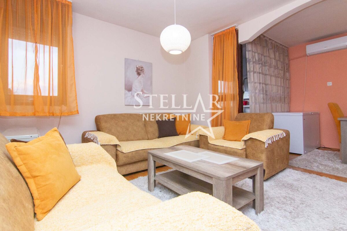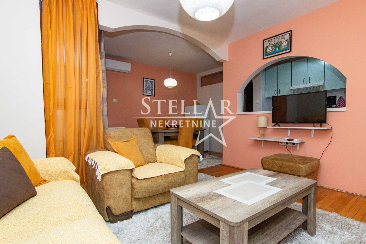 Izdaje se u potpunosti opremljen jednosoban stan 42m2 u Bloku 5. Stan se nalazi na trećem spratu u zgradi sa lifotm. Orijentacija stana je istočna, što mu daje dosta prirodnog svijetla ujutro. Posjeduje klima uredjaj u dnevnom boravku, a od ostale tehnike ima veš mašinu. Stan se nalazi na odličnoj lokaciji, svega 15tak minuta hoda od Centra grada. Kvart je dosta miran i ima puno zelene površine, a što se tiče parkinga on je javan i ima ga svuda u okolini zgrade. ID nekretnine S46 +382 67 618 445
