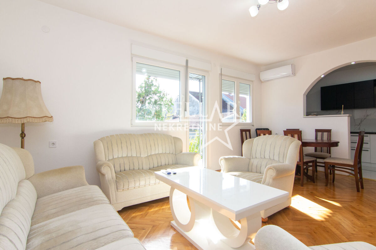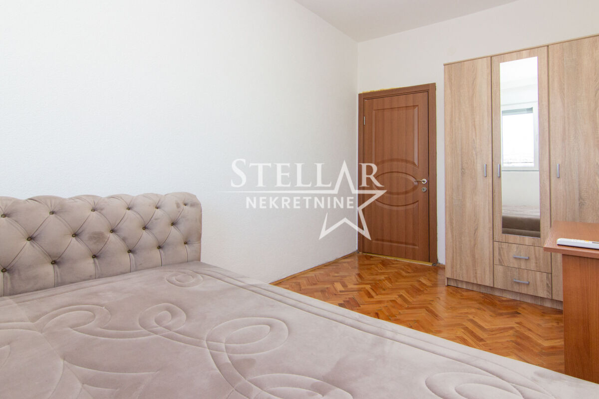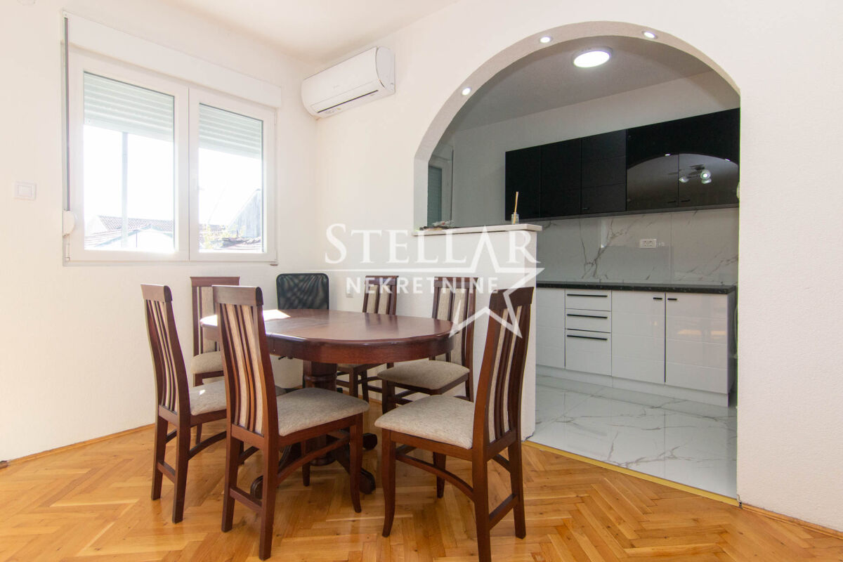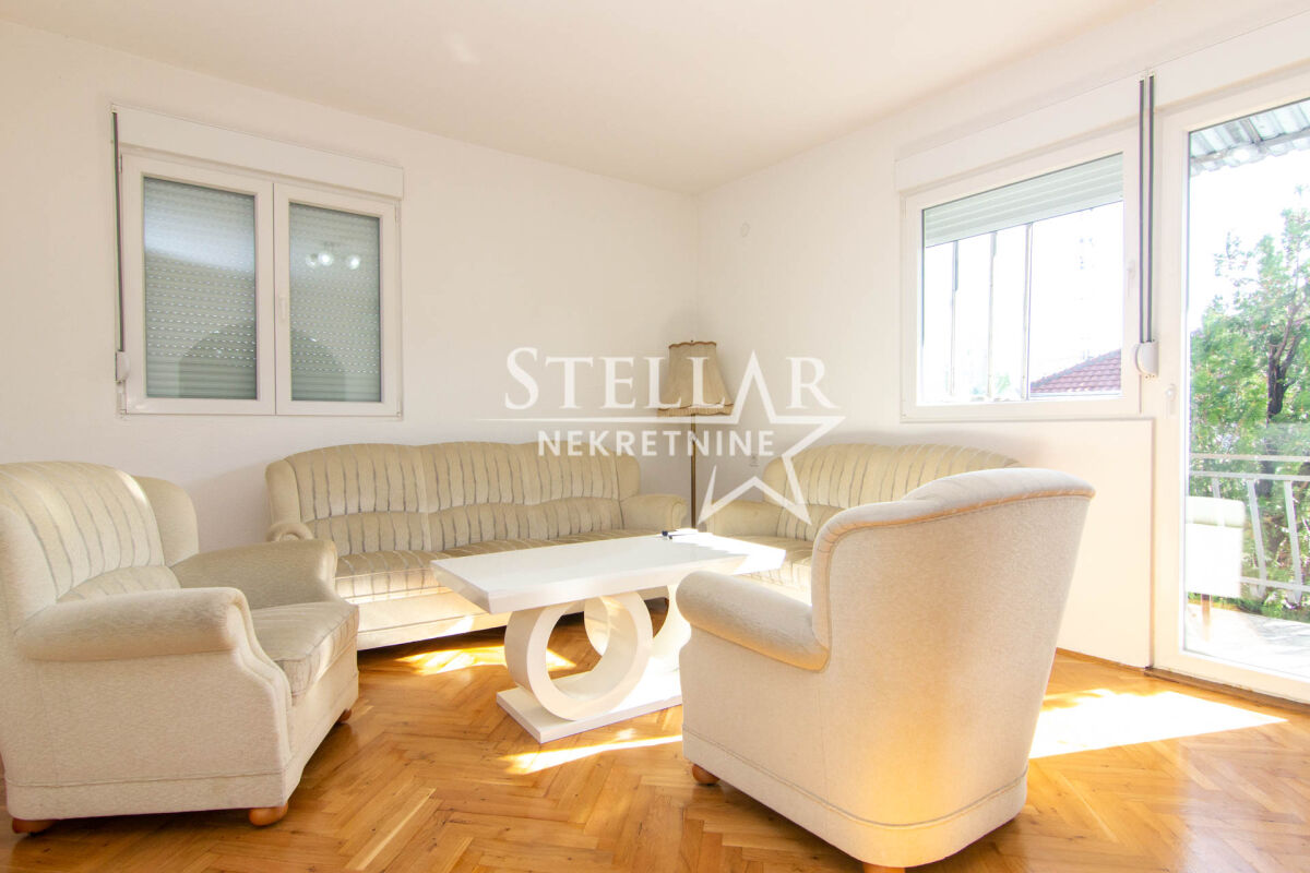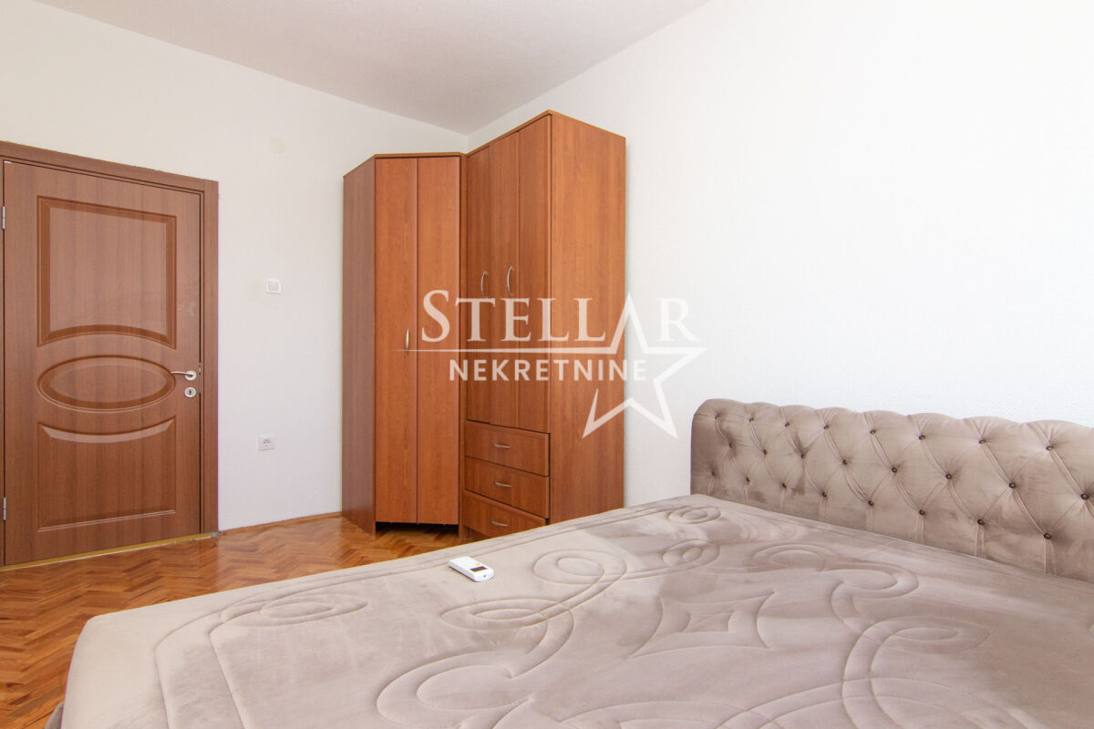 Izdaje se u potpunosti namješten dvosoban stan u kući 91m2. Stan se nalazi n aprvom spratu kuće. Stan ima 3 klima uredjaj u dnevnoj sobi i u dvije spavaće sobe. Od ostale tehnike posjeduje mašinu za veš. U stanu nijesu dozvoljeni kućni ljubimci. Stan se nalazi u mirnom djelu grada na odličnoj lokaciji. U blizini je Big Fashion tržnog centra, a tu su i ostale prodavnice, restorani, butici i teretane. Kuća nema mjesto za parking, ali preko puta nje ima dosta mjesta za isto. Izdaje se na duži vremenski period uz obavezan depozit. ID nekretnine S78 +382 69 618 445