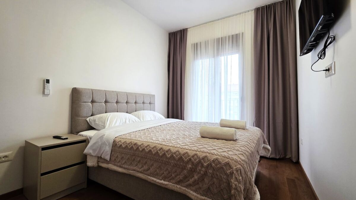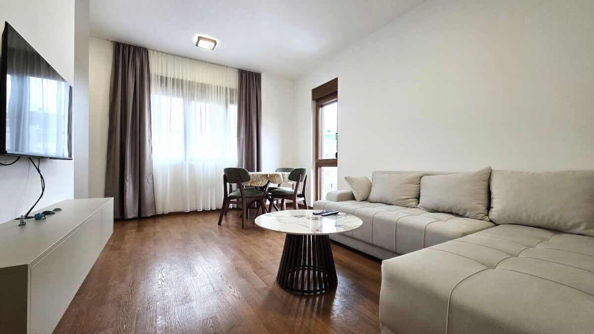 Jednosoban namešten stan za izdavanje, površine 46m2, u komšiluku blizu Vezirovog Mosta, u Podgorici. Nalazi se u novoj zgradi vrhunskog kvaliteta, savremenog dizajna sa visokim nivoom završne obrade. Ovaj stan kombinuje funkcionalnost, moderan dizajn i dobru lokaciju. Stan ima visokokvalitetnu keramiku, parket i unutrašnju stolariju, visokokvalitetnu sanitariju koja obezbeđuje dugotrajnost i udobnost, kao i multisplit sistem klimatizacije. Stan se nalazi na 3. spratu, što mu daje prelep panoramski pogled i puno prirodne svetlosti tokom dana, orijentisan ka jugoistoku. Struktura: ulazni hodnik, dnevna soba sa trpezarijom i kuhinjom, spavaća soba, kupatilo, terasa. Uprkos centralnoj gradskoj lokaciji, okruženje je izuzetno mirno, idealno za odmor i udoban život. Prostor za garažu je uključen u cenu najma. Prilikom potpisivanja Ugovora o zakupu, Zakupac je dužan da plati depozit u iznosu jedne mesečne kirije, koji će biti vraćen na kraju Ugovora, ako su svi uslovi Ugovora ispoštovani.