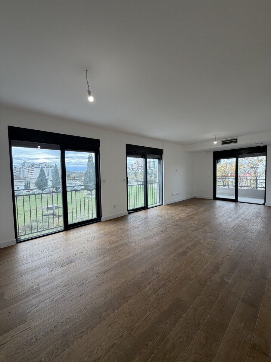 Izdaje se trosoban stan površine 113 m² Preko Morače, na drugom spratu u zgradi ENTEXT Invetsta, preko puta Hrama. Stan je komforan, moderan i nalazi se na jednoj od najtraženijih lokacija u gradu, a zbog rasporeda prostorija i pozicije idealno je rješenje za kancelarije. Uz stan dolaze jedno garažno mjesto i jedno parking mjesto. Mjesečna kirija iznosi 1800 EUR + PDV.