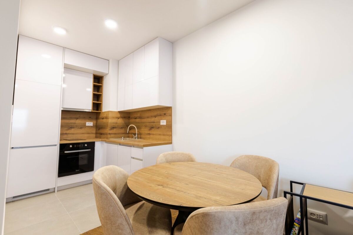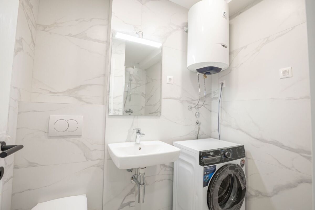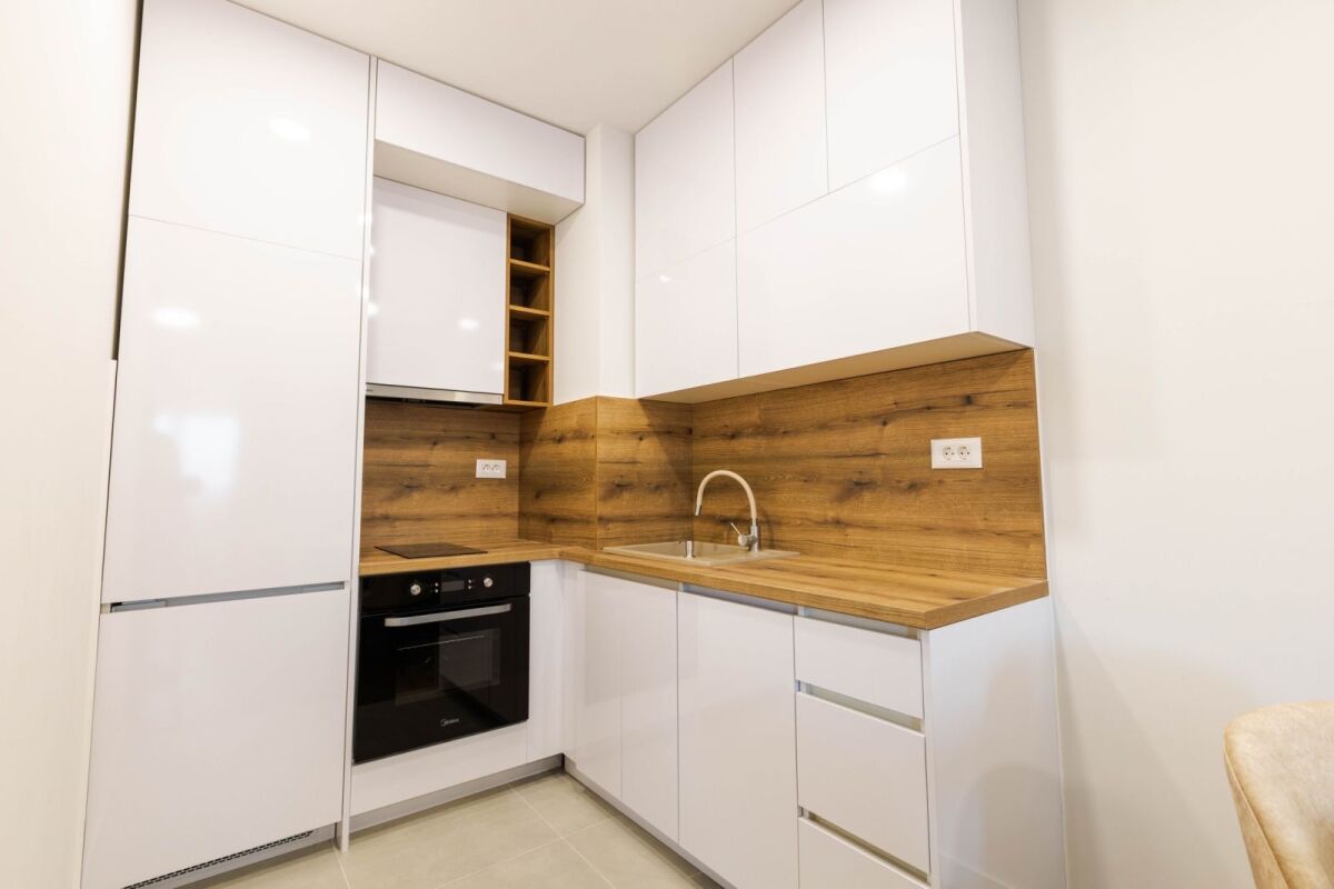 Izdavanje novog moderno opremljenog jednosobnog stana sa garažnim mestom i pogledom na more i grad – Lazi, Budva (Izdavanje na duzi period)