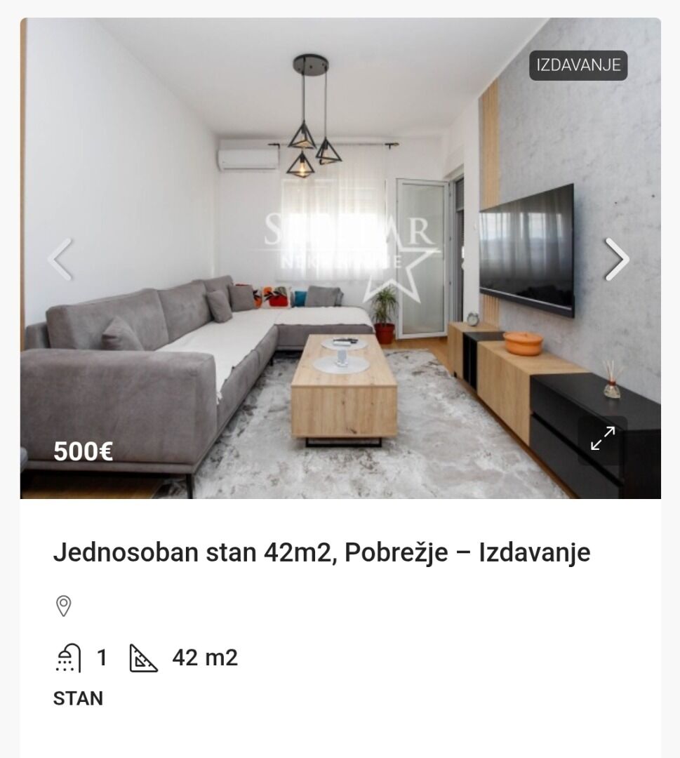 - Na mesec · 500 €Komunalije su uključene