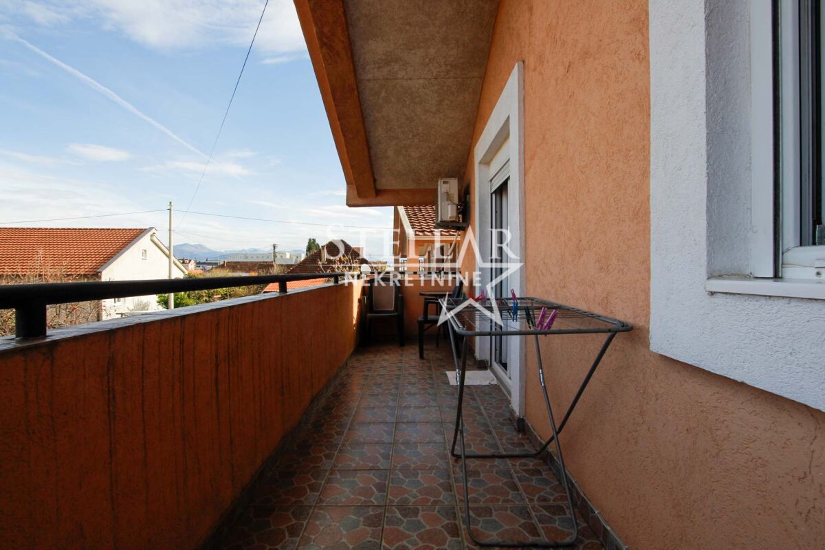 Izdaje se dvosoban stan u kući u naselju Gornja Gorica. Stan je na spratu, veoma prostran, ukupne površine 70m2. Struktura stana je široki hodnik, koji vodi do svih prostorija, dnevna soba, sa kuhinjom i trpezarijom i izlazom na terasu, zatim dvije spavaće sobe i kupatilo. Stan je u veoma dobrom stanju. Ispred stana - kuće, ima obezbijeđeno jedno parking mjesto. Lokacija je prijatna, a veoma blizu glavnoj saobraćajnici - Nikšićki put. U blizini su prodavnice, a na nešto više od 1km su kvartovi oko Big fashion tržnog centra. Izdaje se na minimum godinu dana uz obavezan depozit. ID nekretnine M707 +382 69 618 445
