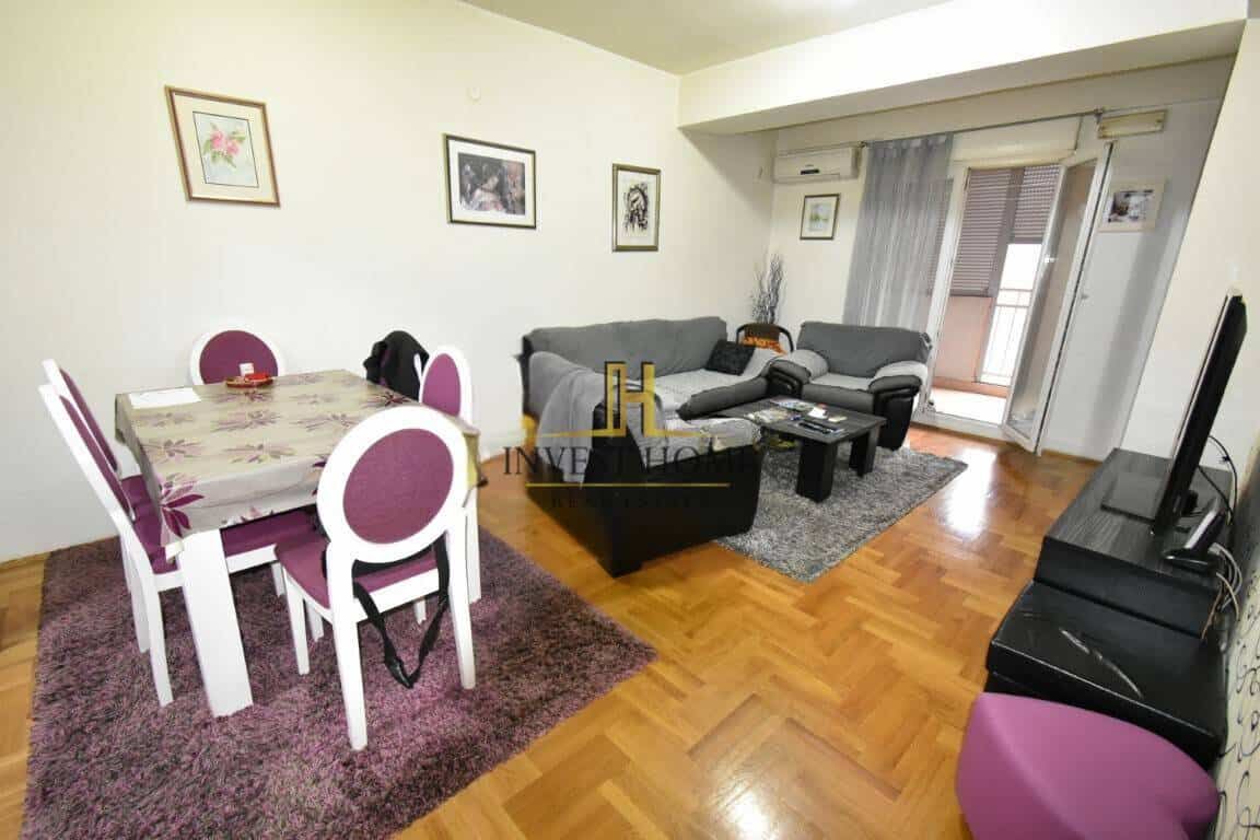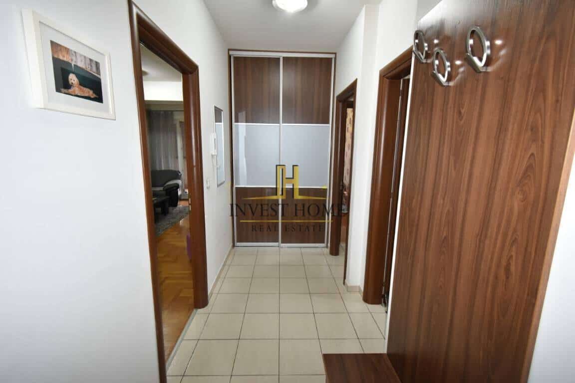 Za izdavanje trosoban stan, City kvart, površine 92m2. Stan se nalazi na 5. spratu, u Profesorskoj zgradi, koja posjeduje lift. Struktura stana: ulazni hodnik, dnevna soba, kuhinja i trpezarija, tri spavaće sobe, kupatilo, toalet i terase. Stan je veoma dobrog rasporeda, kompletno namješten, klimatizovan. U blizini je glavne gradske biznis zone, restorana, kafića. Posjeduje kablovsku tv i internet, kao i dva parking mjesta iza rampe. Orijentisan je jugoistočno.