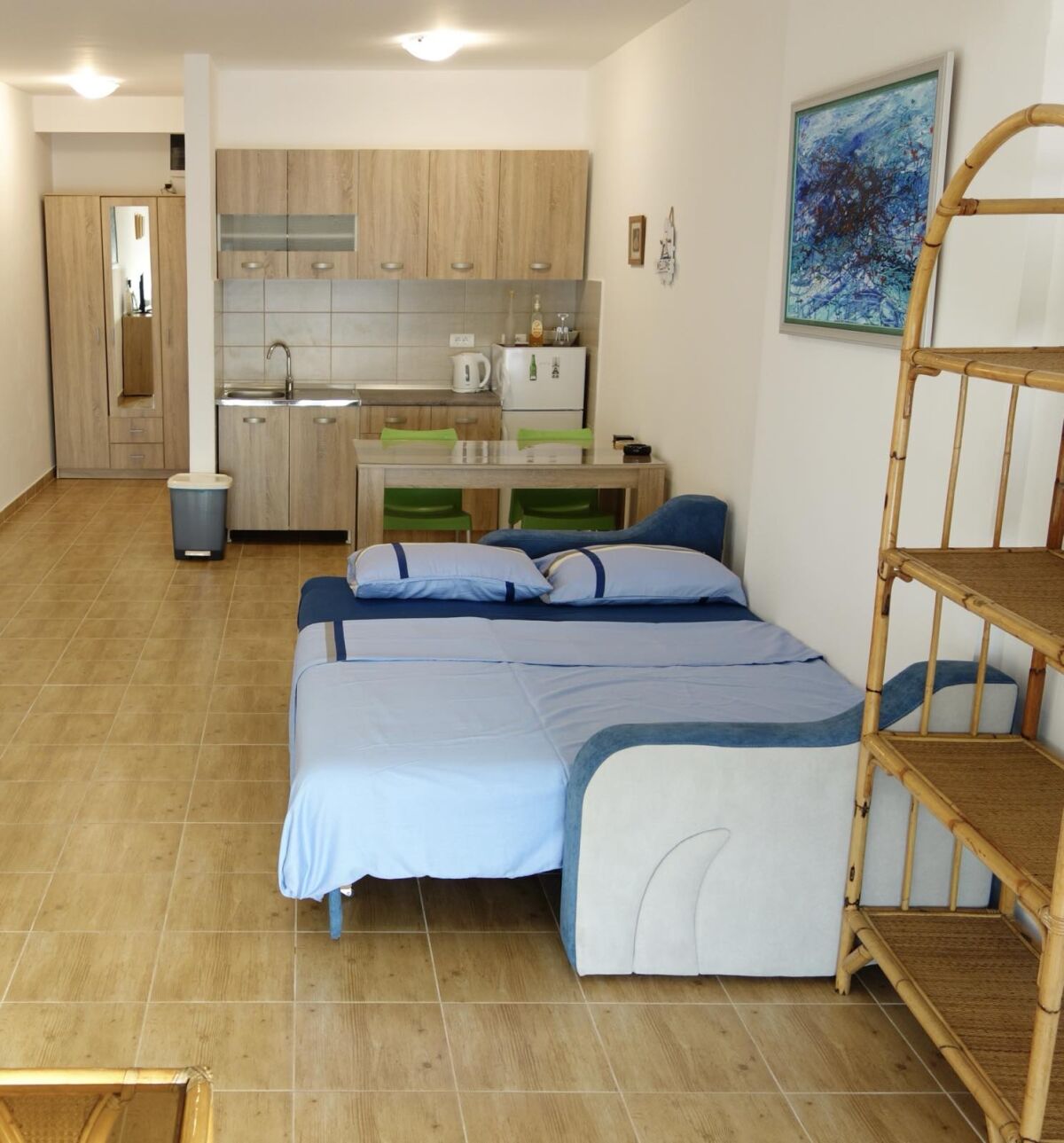 Izdaje se garsonjera od 40m2 na 1. spratu. Nalazi se na samo 4 minuta hoda od mora, ispod magistrale. Prelijep pogled.