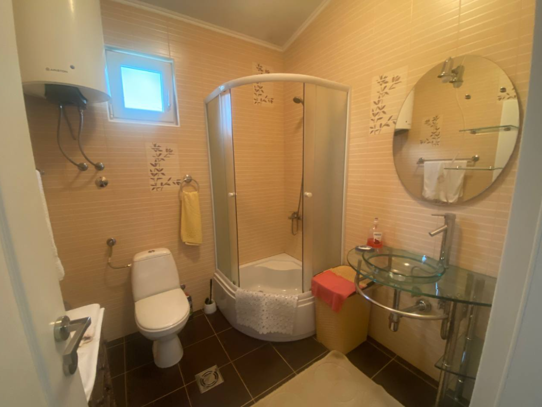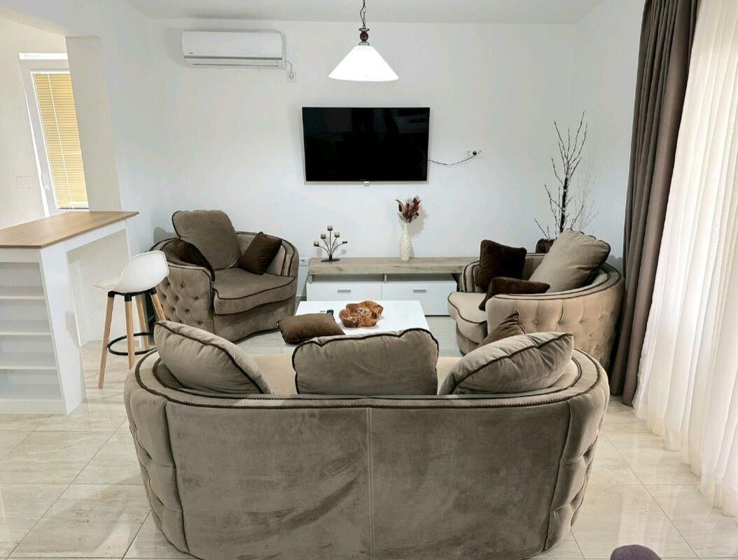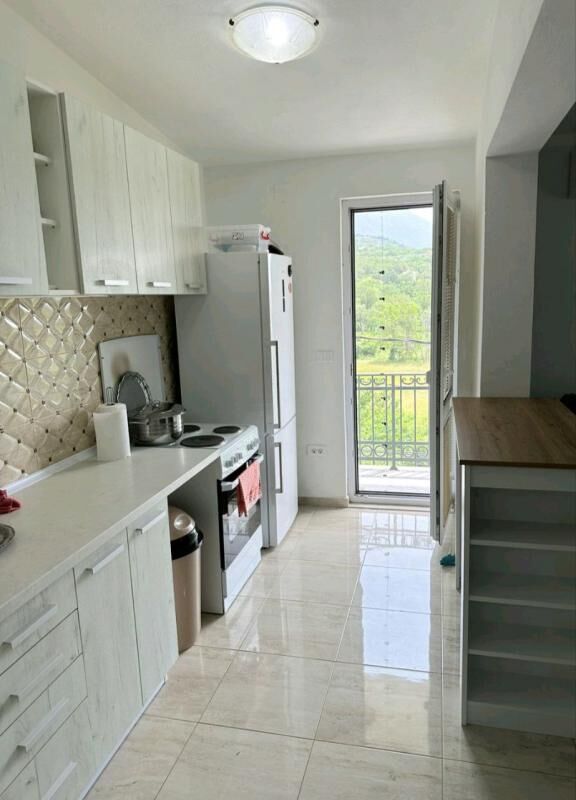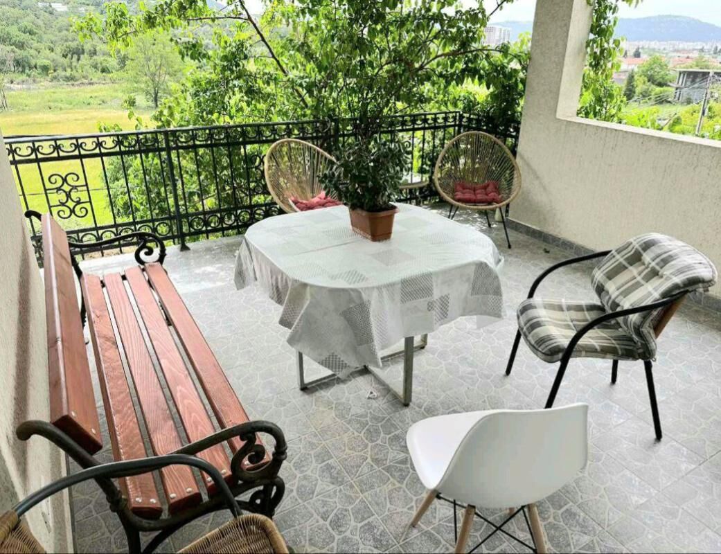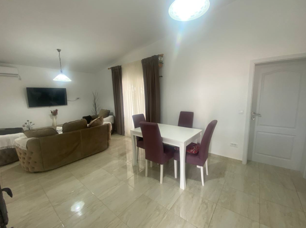 Izdaje se stan, koji zauzima ceo 2. sprat kuće, površine 100m2. U stanu: 3 spavaće sobe, kuhinja - dnevna soba, kupatilo sa tušem, ostava sa veš mašinom, hodnik. U stanu je novi nameštaj i tehnika: televizor, klima uređaj, mašina za sudove, šporet sa rernom, veliki frižider, veliki bojler u kupatilu i mali bojler u kuhinji, peć na drva za dodatno grejanje zimi, prozori do poda sa komarnicima. Dve terase obavijaju sprat sa obe strane (jedna velika za stalno provodjenje vremena u senci drveta). Internet optički. Moguće sa malim vaspitanim ljubimcem (poželjno, mačka). Do plaže i centra grada peške 30 minuta, autom 5 minuta. Jedno parking mesto pored kuće. Plaćanje za mesec, plus komunalne usluge. Plaćanje odmah: za prvi mesec, plus poslednji mesec, plus depozit. Iznajmljivanje po ugovoru, samo na duži rok.