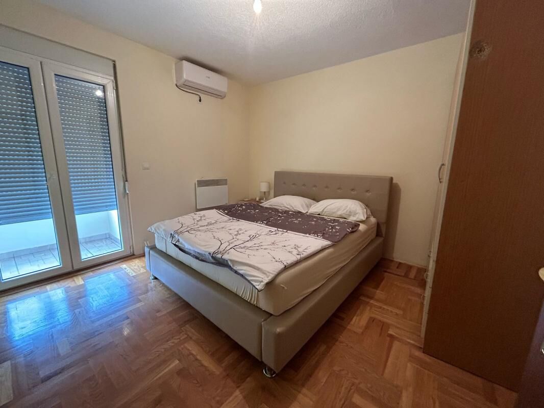 Nameblirana stan površine 120 m2. Stan se nalazi na 1. spratu. Struktura stana: 3 spavaće sobe, kuhinja, spojena sa dnevnom sobom, ostava, 2 kupatila, terase. U stanu: veš mašina, frižider, TV, 3 klima uređaja. Ima parking mesto. Stan se nalazi na odličnom mestu pored škole Anto Jedovići. Do mora 5 minuta. Bez kućnih ljubimaca. Plaćanje mesečno + komunalije. Plaćanje odmah: za prvi mesec + poslednji mesec + depozit.
