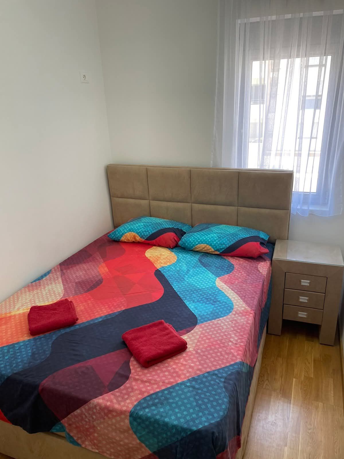 Svetla stan u Ulcinju Objekat br. 791b Grad: Ulcinj Površina: 65 m2 Sprat: 2/6 Broj spavaćih soba: 2 Iznajmljivanje: mesečno Cena: 370 evra do leta Struktura stana: - dnevna soba-kuhinja sa trpezarijom - 2 spavaće sobe - kupatilo - terasa Udobnosti: - podzemni parking - internet - 2 klima uređaja - veš mašina - mašina za sudove - fen, čajnik - lift Udaljenost do - plaže – 1,3 km - najbliži supermarket, apoteka – 100 m - kafić - 300 m