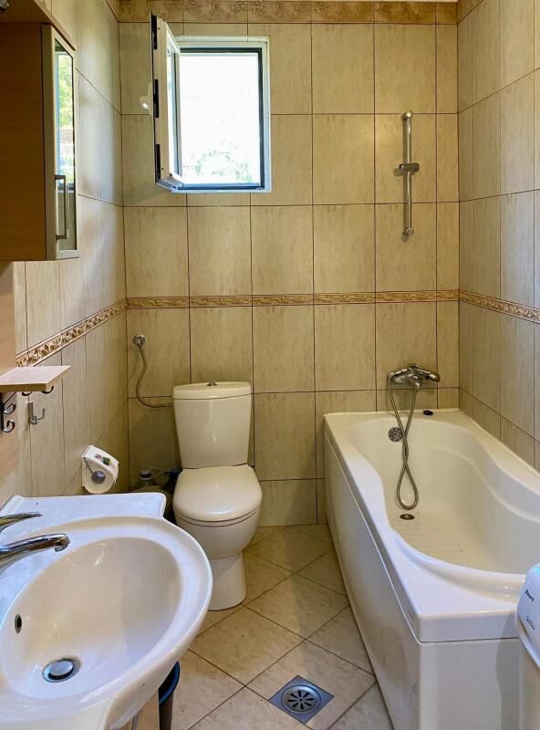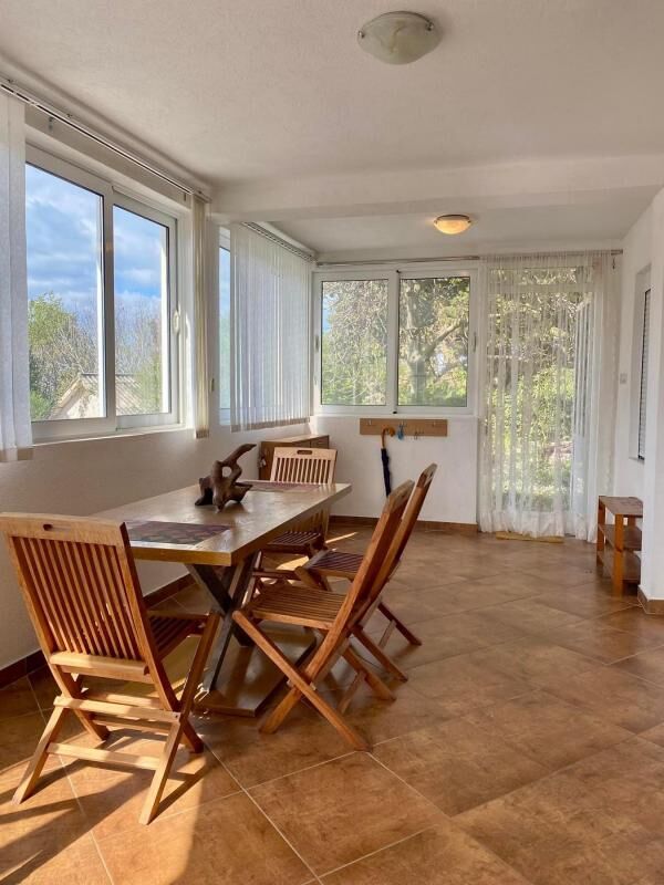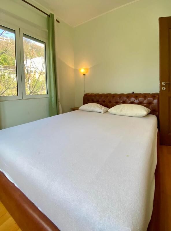 Ugodna, prostrana kuća, ukupne površine 200m2 (terasa uključena), nalazi se na 15 minuta vožnje od Bara i 10 minuta od Ulcinja. Na 1. spratu: dnevna soba sa kaminom, spavaća soba i kupatilo sa tušem; na 2. spratu: dnevna soba, 2 spavaće sobe i kupatilo sa kadom. Sa terase se pruža veličanstven pogled na more, do kojeg se može doći za samo 5 minuta. Oko kuće je uređen prelep vrt sa voćkama. Ima svu potrebnu tehniku za udoban boravak, kao i garažu i parking mesta. Izdaje se za sezonu po ceni od 1000€ mesečno, van sezone po ceni od 800€ mesečno.