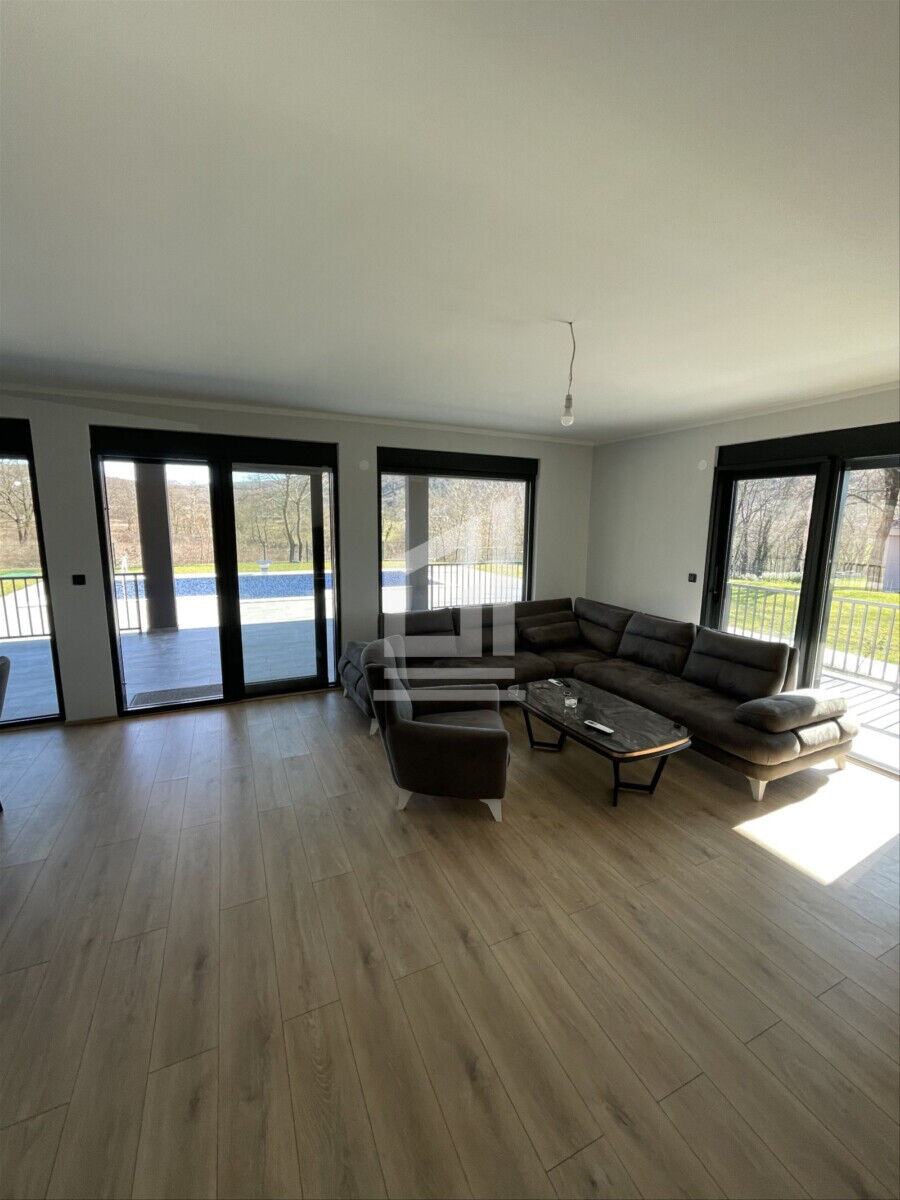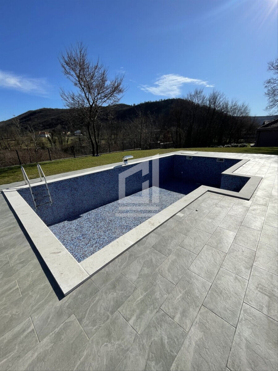Nova nameštena kuća za izdavanje u Pričelju, 7 km od Vezir mosta. Kuća ima podno grejanje u hodniku, kupatilu i kuhinji, a sobe su opremljene klima uređajima. Ima 2 pomoćne zgrade od 40m2 i 36m2, poseduje veliki bazen 10×5. Nalazi se na izuzetno mirnoj lokaciji na placu od 2000m2. Cena na upit.