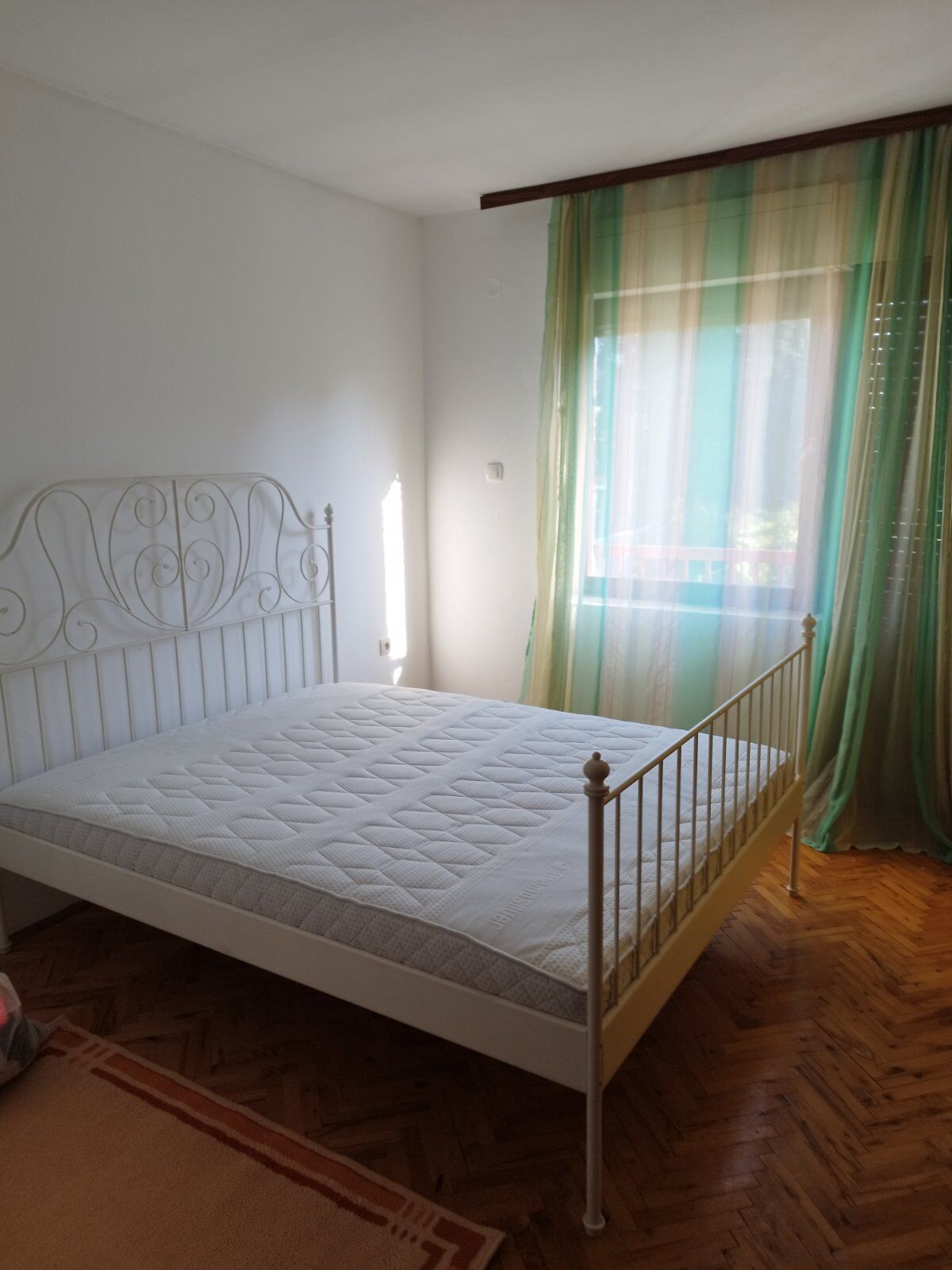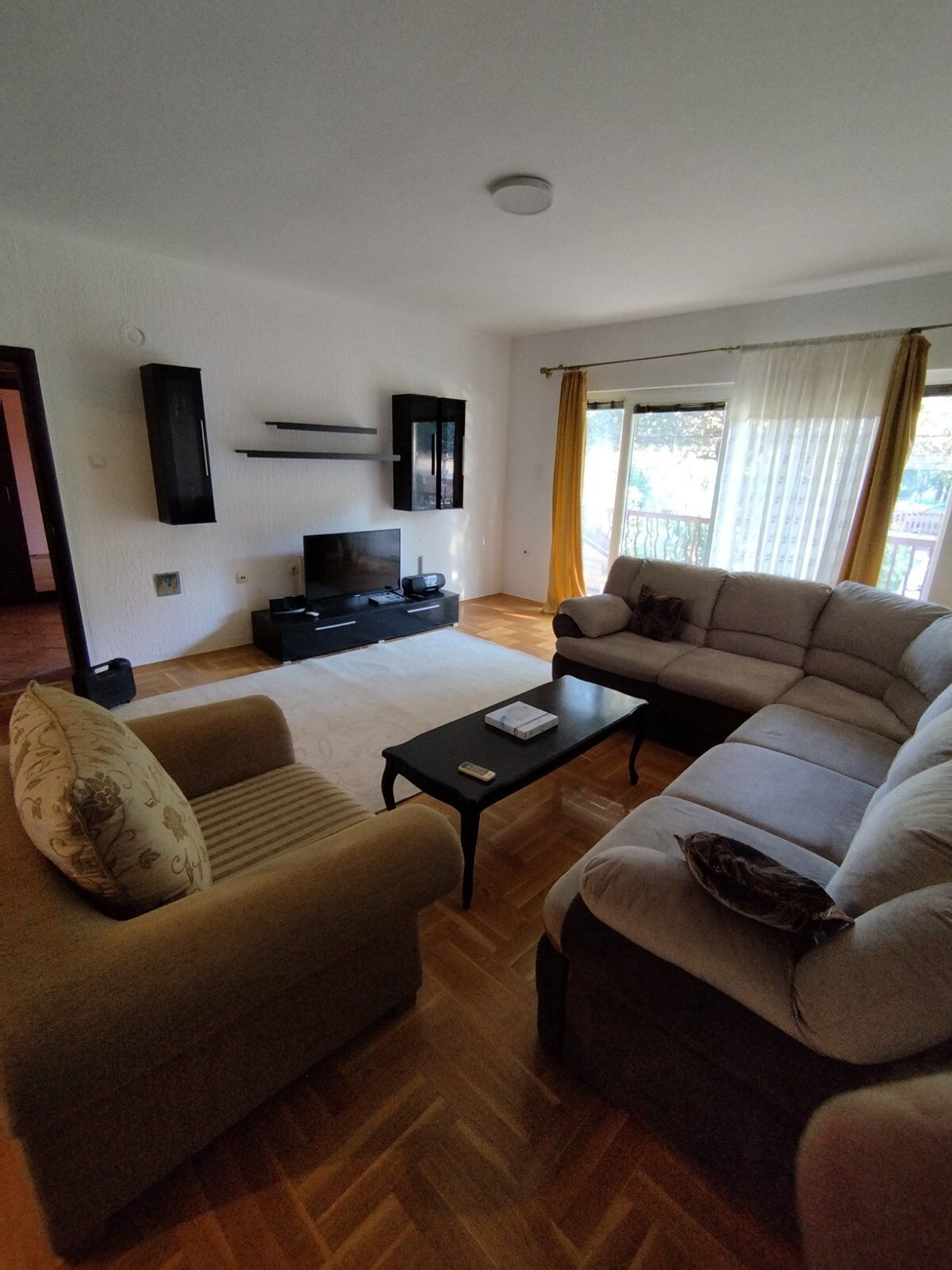 Izdaje se namješten trosoban stan u dijelu kuće, podijeljenoj po horizontali. U prizemlju su dnevni boravak, trpezarija sa kuhinjom, jedna soba i jedno kupatilo, a dvije sobe i drugo kupatilo su na prvom spratu. Imaju unutrašnje stepenice. Ima dvorište i 2 parking mjesta. Zaseban ulaz. Posjeduje podno grijanje.