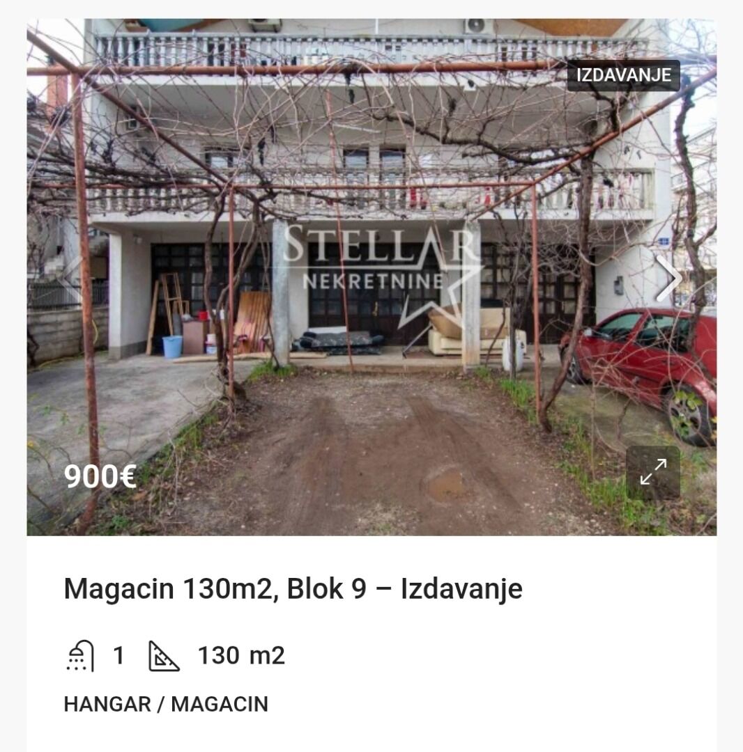 Izdaje se magacinski prostor od 130m2 u Bloku 9 iza hotela Resurs. Visina plafona je 3m. Prostor ima dva toaleta. Moguć je prilaz manjim kamionom ili kombijem do ulaza. Izdaje se na duži vremenski period uz obavezan depozit. ID nekretnine M514 +382 69 618 445